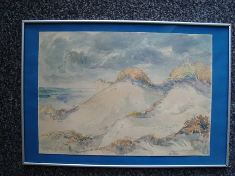 Akvarel af Aksel Lundgreen - Motiv fra klitterne ved Lyngby ved Vestkysten 1955.
