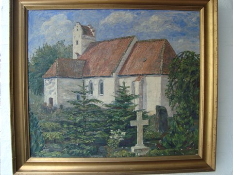 Maleri af Arthur Nielsen 1924 - Feldballe Kirke på Djursland.