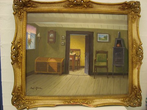 Maleri af Frederik Drews - "Interiør" - signeret med pseudonymet "Poul Rönne"