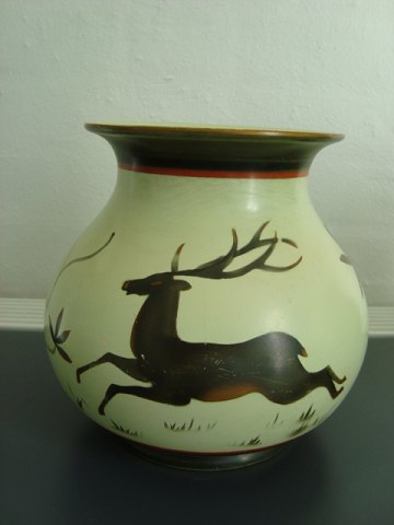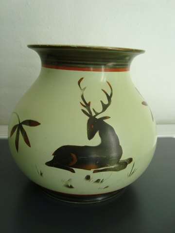 Par fajance vaser dekoret med hjortemotiver på begge sider.