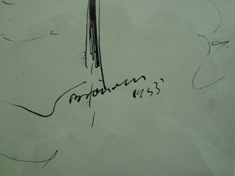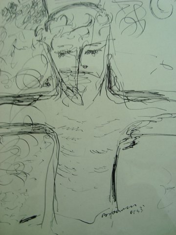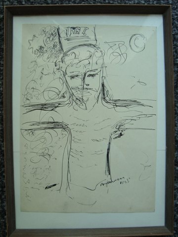 Tuschtegning - Peder Brøndum Sørensen - 1955 - "Den korsfæstede Kristus"