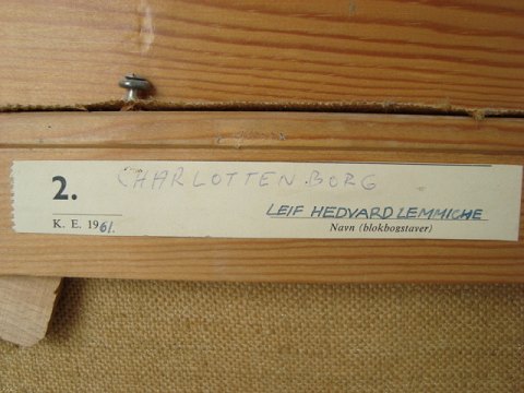 Bagpå mærkat fra Charlottenborg - Kunstnernes Efterårudstilling 1961 - udstillet som nr. 2.