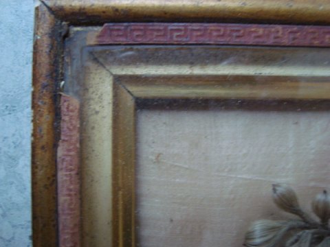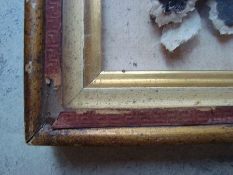Indrammet i smuk samtidig ramme, hvor papir pyntebånd med a la greque bort er lettere defekt.