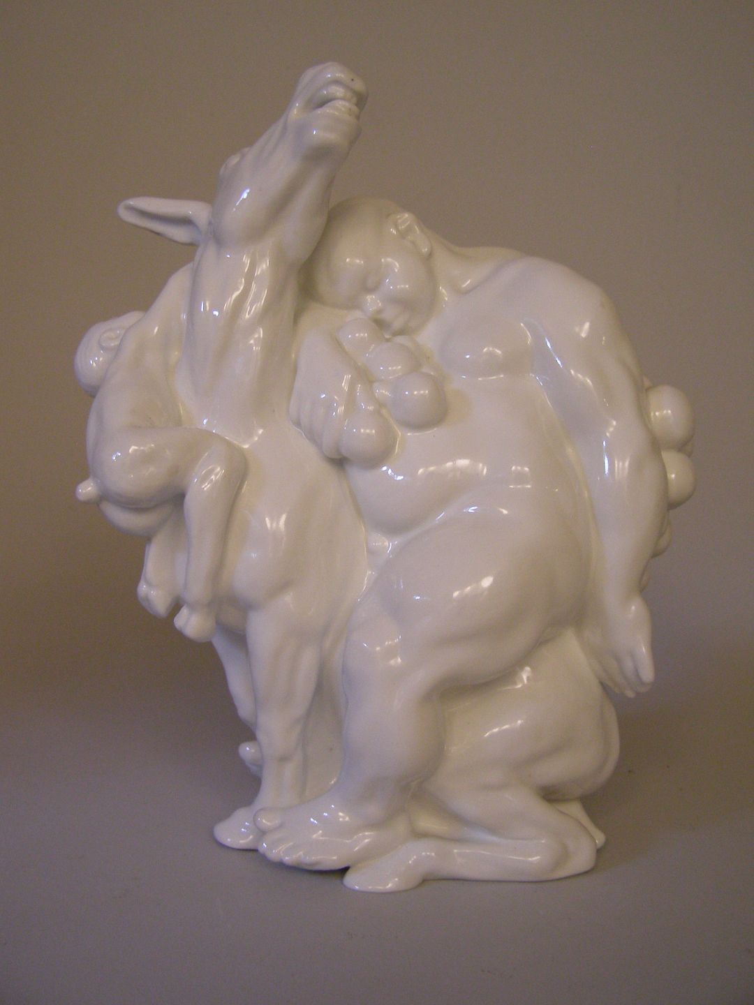 B&G Figurgruppe med faun,æsel og dreng Sign. Kaj Nielsen, h:22cm.
