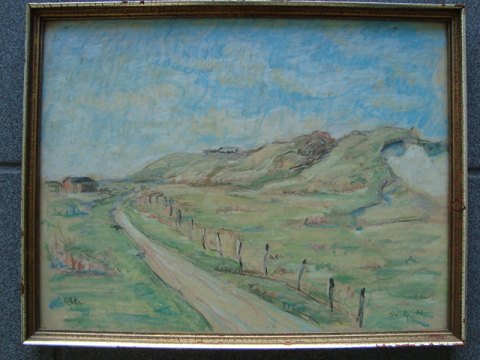 Akvarel/oliekridt af Svend Kjeldsen - landskab 1941.