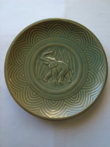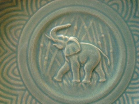Dekoreret med kartouche - Elefant i bambusskov - i relief, samt fanen med reliefbort.