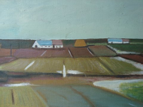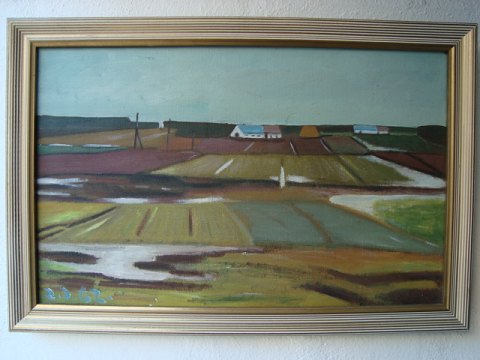 Landskab med marker og ejendomme - Jørgen Jensen 1962.
