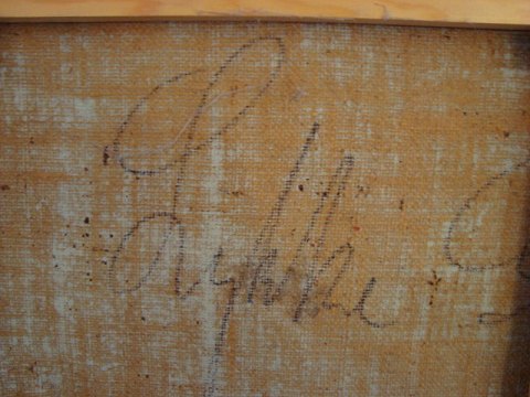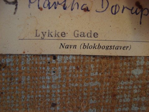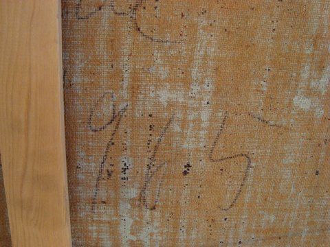 Bagpå mærkat fra Kunstnernes Efterårsudstilling (KE)1965 nr. 1.