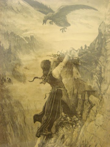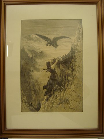 Motiv - Mor tager sit barn fra ørnerede før ørnen kommer.
