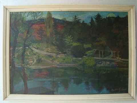Maleri af Herdis Gelardi - Motiv fra Botanisk Have i København.