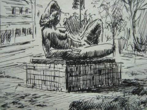 Tusch tegning af Otto Møller "Liggende kvinde" Brønderslev 1984.