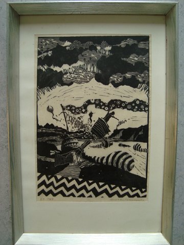 Linoleumstryk af Knud Andersen - Ballonfald 1967.