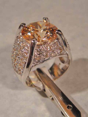 og Talrige brilliant slebet krystaller på siderne aft ringen.