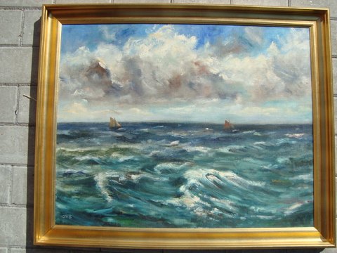 Maleri af O.V. Borch - Sejlskibe på oprørt hav.