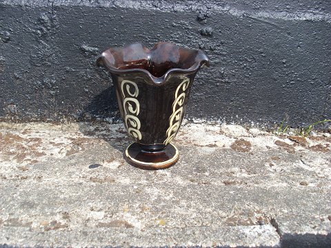 Kähler vase i sort glasur med gul dekoration.
