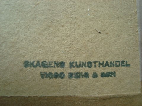 Solgt fra Skagen Kunsthandel ved Viggo Berg & Søn, Skagen (stempel bagpå)