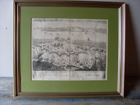 Gammelt kobberstik med motiv af Frederiksodde i fin sølv ramme.
