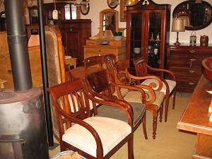Stor salgsudstilling med restaurerede møbler håndpolerede mahognimøbler, afsyrede fyrretræsmøbler, malede træmøbler, kun originale gamle og antikke møbler.