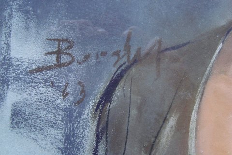 Gouache - Portræt 1963 forestillende Skuespillerinden Susse Wold.