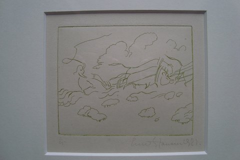 Radering af Ernst Hansen 1921 - Gefion der pløjer Sjælland fri.