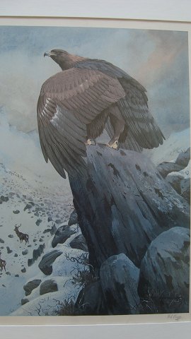Tryk af den skotske kunstner F.S. Begg - Ørn på klippe.