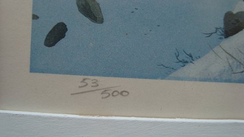 Tryk på papir indrammet med passepartout i pæn guldramme.