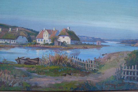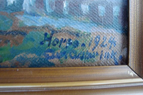 Bagpå blindramme betegnet - Sommermorgen Horsø, Husene 1924.