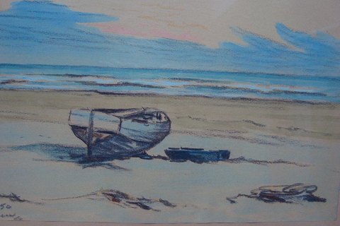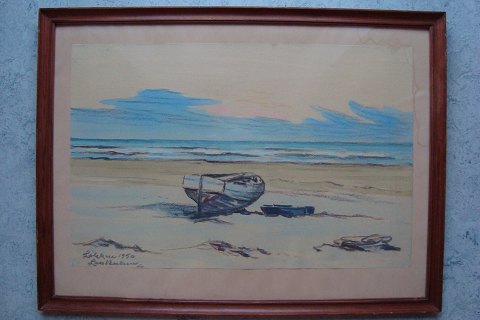 Pastel af Lars Nielsen - Løkken Strand 1950.