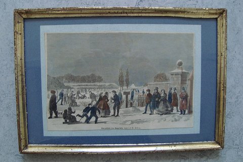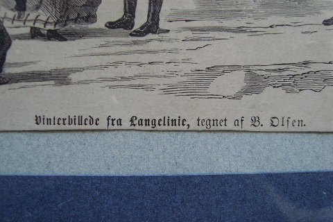 Tekst - Vinterbillede fra langeline - Tegnet af B. Olsen.