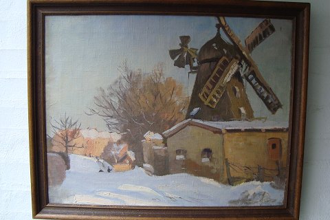 Malei af Aage Bernard-Frederiksen - Vinterparti fra Vesterbro Mølle i Aarhus.