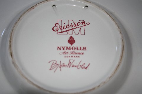 Bjørn Wiinblad, Nymølle. Rød platte med forskellige telefonmotiver, antageligt produceret til Ericsson, da dette navn står på platten. Diameter 22 cm. Pris 250 kr.