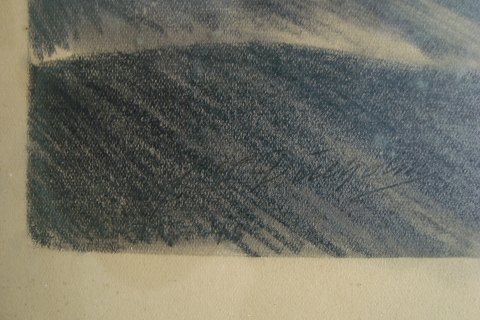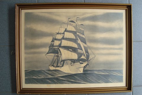 Tegning af stort sejlskib - signeret H.E. Dueholm 1946.