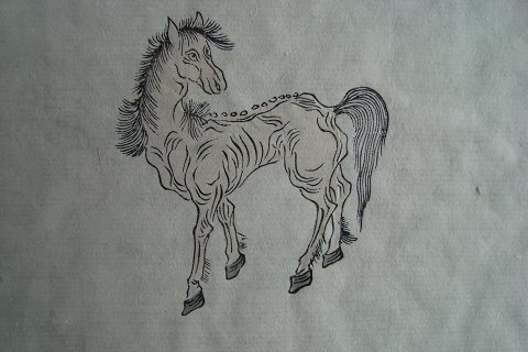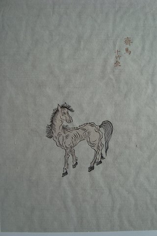 Japansk koloreret træsnit - Mager hest - Shizhu Zhaijianpo 1952.