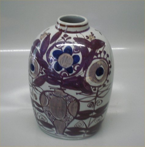 Aluminia kunstfajance 181-2878 Vase Lila Blomstermotiv Tenera Kari Christensen 18 cm