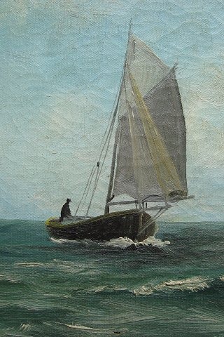 Maleri af Reinhard Johansson - Sejskib på åbent hav.