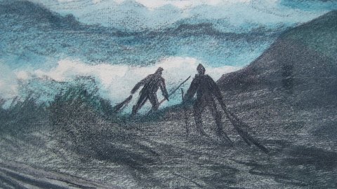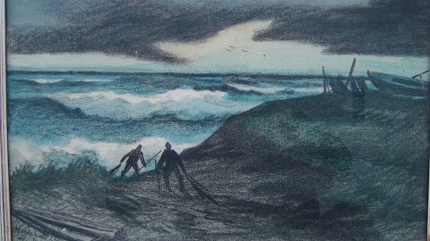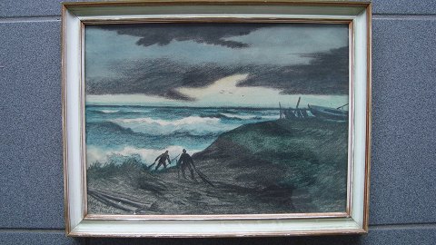 Pastel af Lars Nielsen - Dramatisk kystparti, Hirtshals 1935.