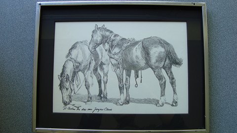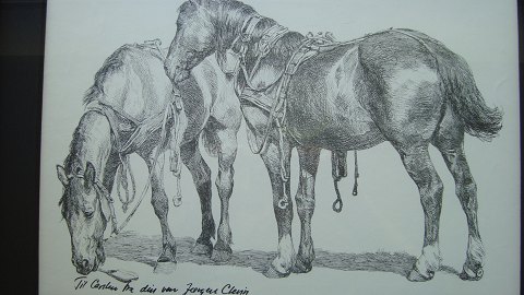 Litografisk tryk af 2 heste - dedikeret af Jørgen Clevin.