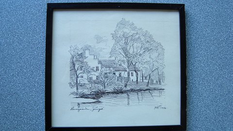 Tegning af Herregården "Junget" af Karen Palsgaard 1950.