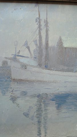 Bagpå udstillingsmærkat fra Kunstnernes Efterårsudstilling no. 2 "Både i Skagen Havn" - Marx Reese.