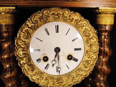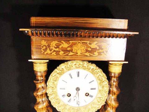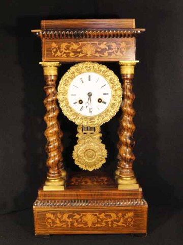 FRANSK Konsolur, palisander med intarsia af Citrontræ, urhus båret af drejede snoede søjler og Forgylde Bronzemontering.