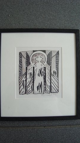 Litografi af Kaj K. Nørkjær 1991 - Golgata billede.