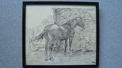 Tuschtegning af Sven Schou - Hest.