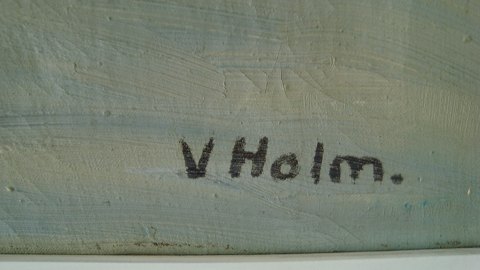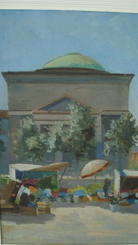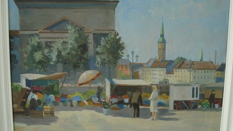 Maleri af V. Holm - Folkelive og blomstersælgere på Gammel Strand i København.