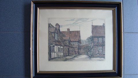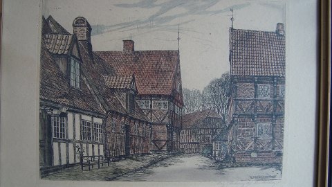 Radering af Leo Houlberg "Den Gamle By, Aarhus"