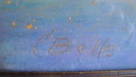 Pastel af C. Bolt 1947 - Blomster i blå vase.