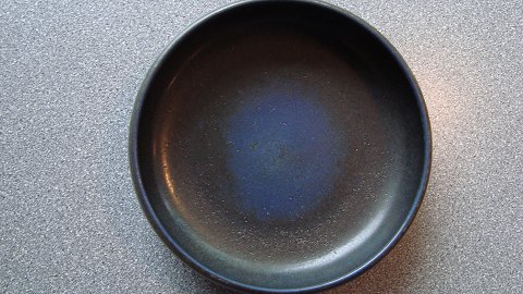 Lille stentøjs bordfad med lækker sort/blå glasur.