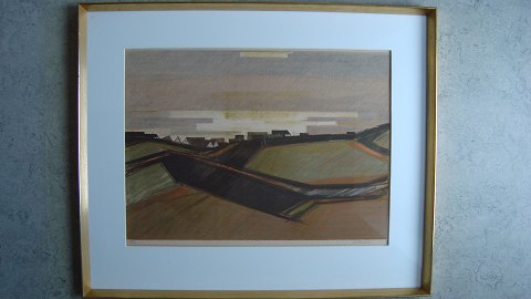 Litografi af Erik Nørgaard - Nordjysk landskab.