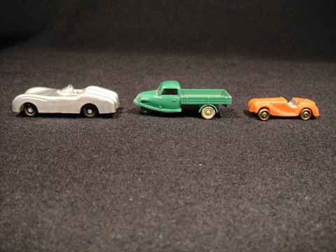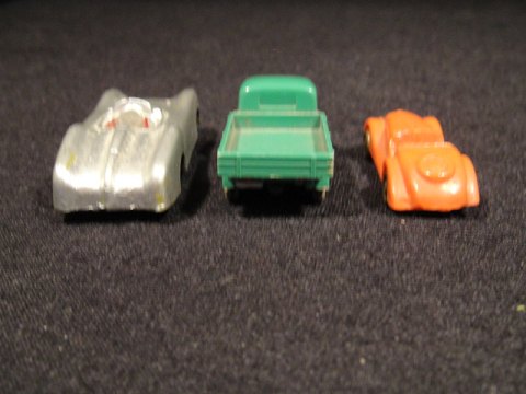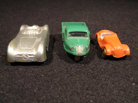 3 plastik biler miniature.