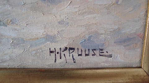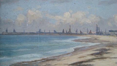 Maleri af Hans Kruuse - Parti fra Sønderstrand, Skagen med badehuse.