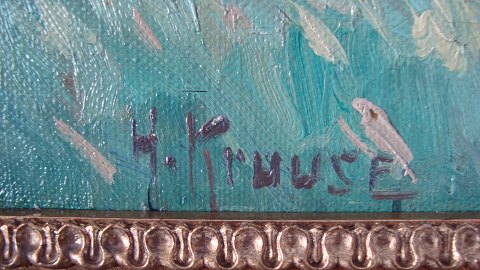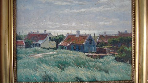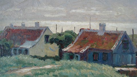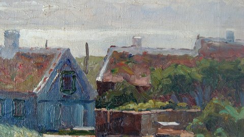 Maleri af Hans Kruuse - Parti fra Skagen med vue ud over huse.